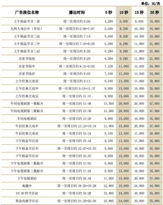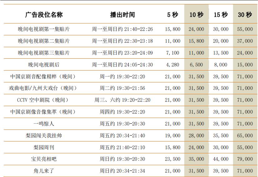 CCTV-11頻道廣告價值