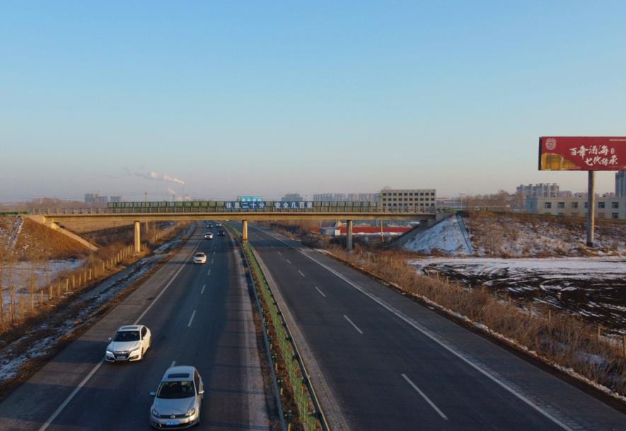 此跨線橋位于五里坡收費站,吉林省門面。效果顯著,可視距離遠,視覺好,廣告效益高。