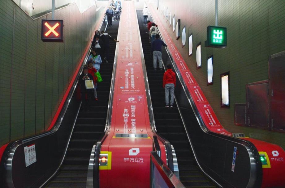 燈箱、墻貼、吊旗、包柱、梯頂、梯眉、梯旁看板、閘機貼、屏蔽門貼、部分站廳還有品牌通道