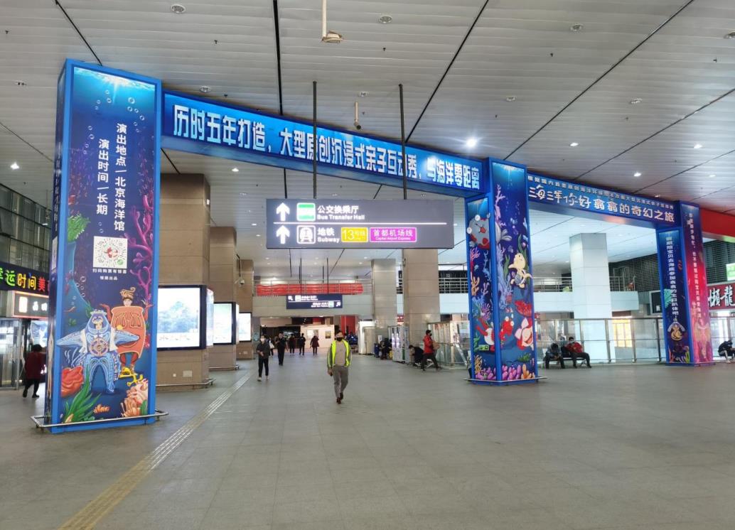 東直門交通樞紐站廣告-一層換乘區(qū)南廳出入口通道 – 包柱燈箱廣告