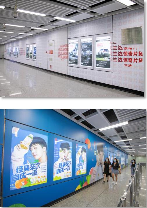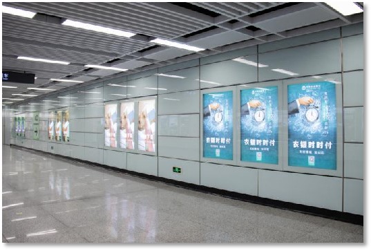 公共區(qū)3連4封燈箱位于個(gè)站點(diǎn)出入口過(guò)道處,為進(jìn)出站點(diǎn)必經(jīng)之路。