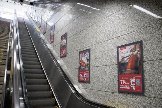 投放形式以單邊樓梯統(tǒng)一投放,通過(guò)不斷重復(fù)的內(nèi)容畫(huà)面可有效加強(qiáng)乘客的廣告記憶。