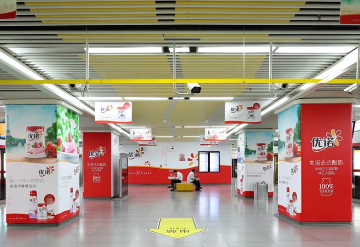 1、4號線換乘區品牌站廳:7塊12封燈箱+2塊墻貼+8根包柱+2塊閘機貼