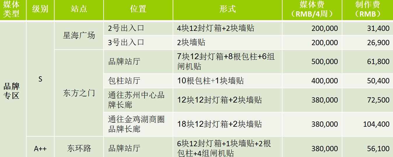 A+:媒體費(RMB/4周/站):120,000