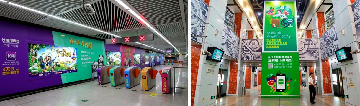 品牌站廳:3塊12封燈箱+8根包柱+5組閘機貼