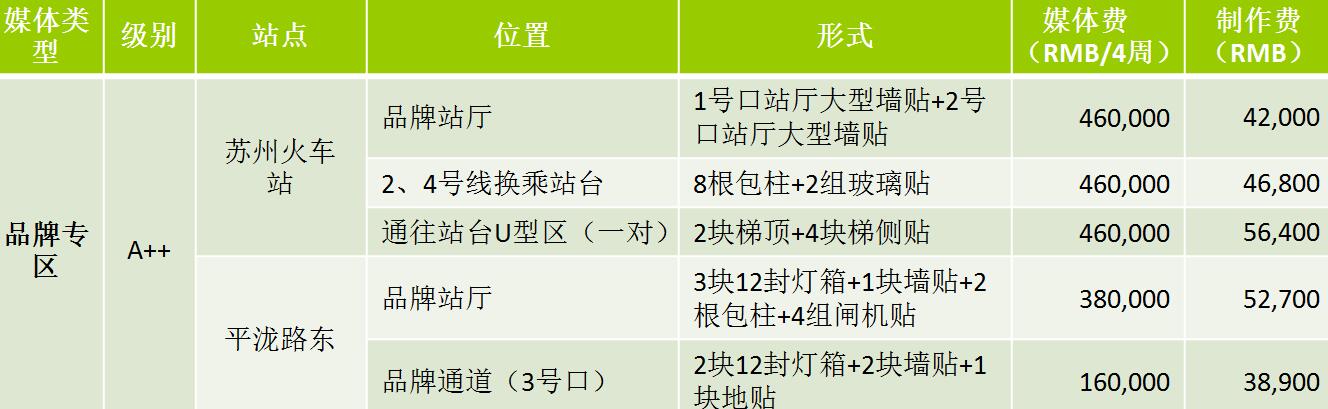 A++:媒體費(RMB/4周/站):160,000