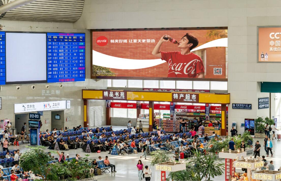 1、此媒體為候車區南北對稱墻體上方媒體,中間無任何遮擋,百余平方米巨型畫面,視覺震撼性強,且候車室內無死角,彰顯品牌形象。
