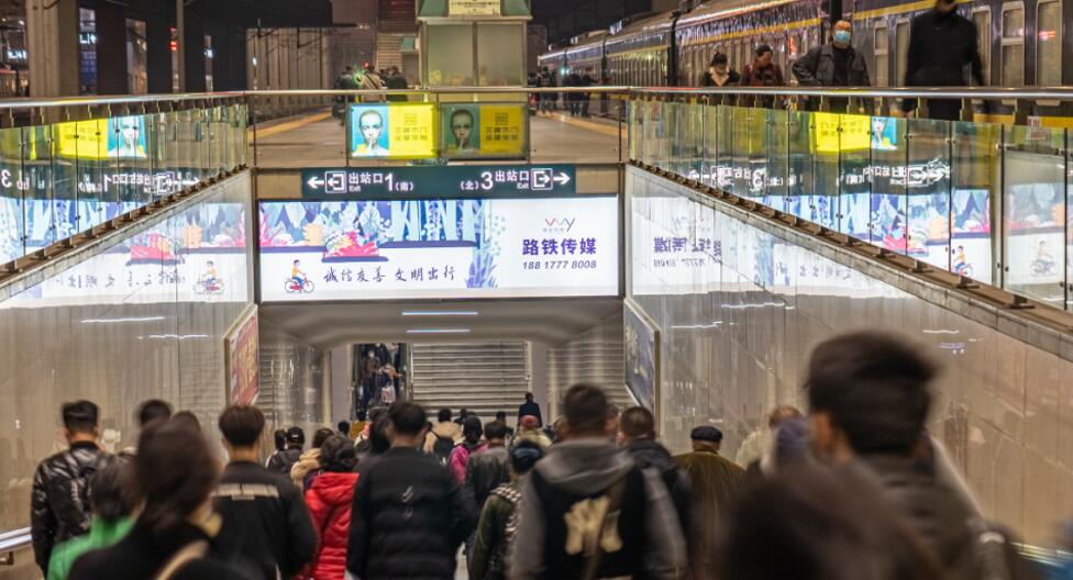 1、此媒體為檢票口上方墻面燈箱,是進站必視媒體可覆蓋所有進站人群,且媒體位置較高面積巨大可遠距離輻射周邊人群,視角廣闊,廣告投放到達率高,聯排投放彰顯品牌形象。
