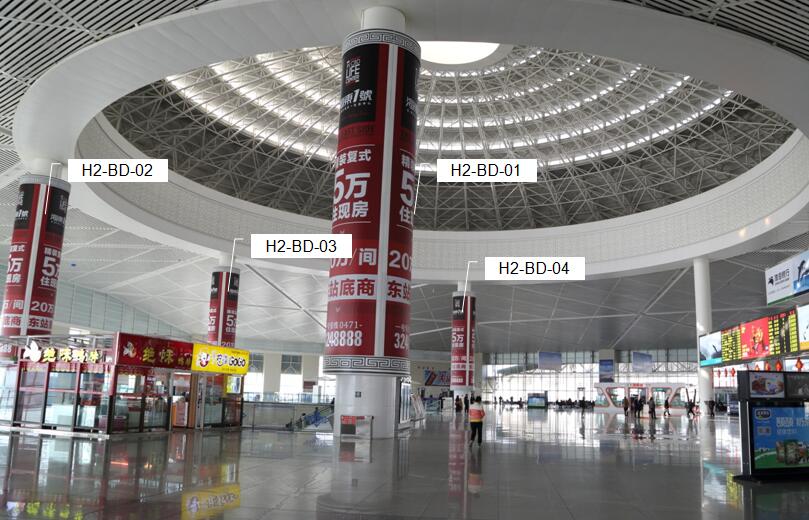 | 呼和浩特東站 媒體編號:HHHTE-H2-BD-(01-04) 媒體位置:二樓候車大廳 媒體類型:包柱燈箱 最小售賣單位:1 媒體數(shù)量:4 廣告尺寸(m)寬*高:3.14*12.04*3面 廣告面積(㎡)=113.42 刊例價(萬元/月)30/塊 (價格僅供參考)? ? ?? |