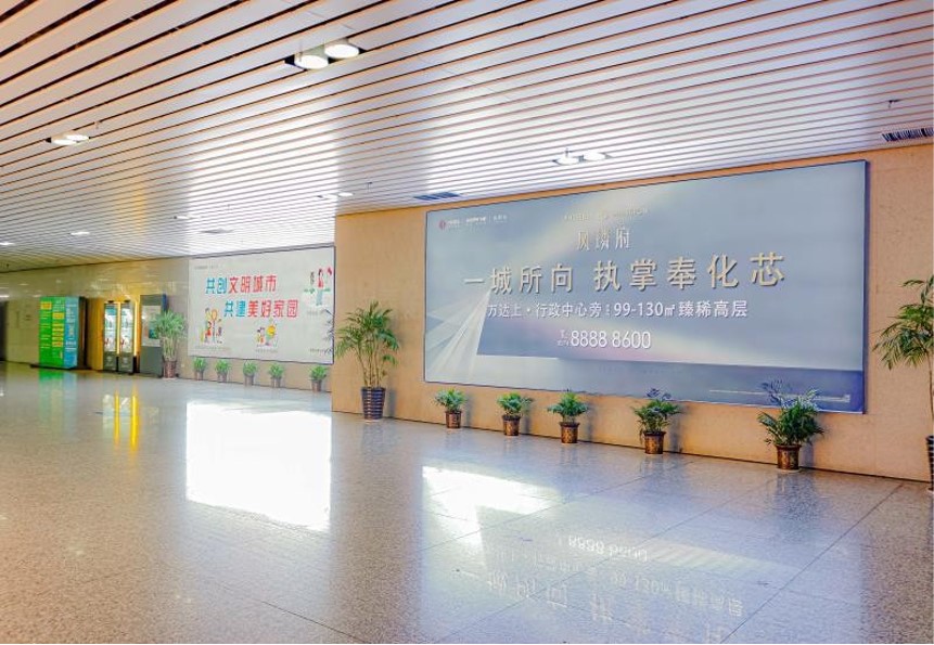 該媒體位于南北通道廣場,影響大部分到達流動人群,視線觀點單一,可起到強制觀看的 效果。