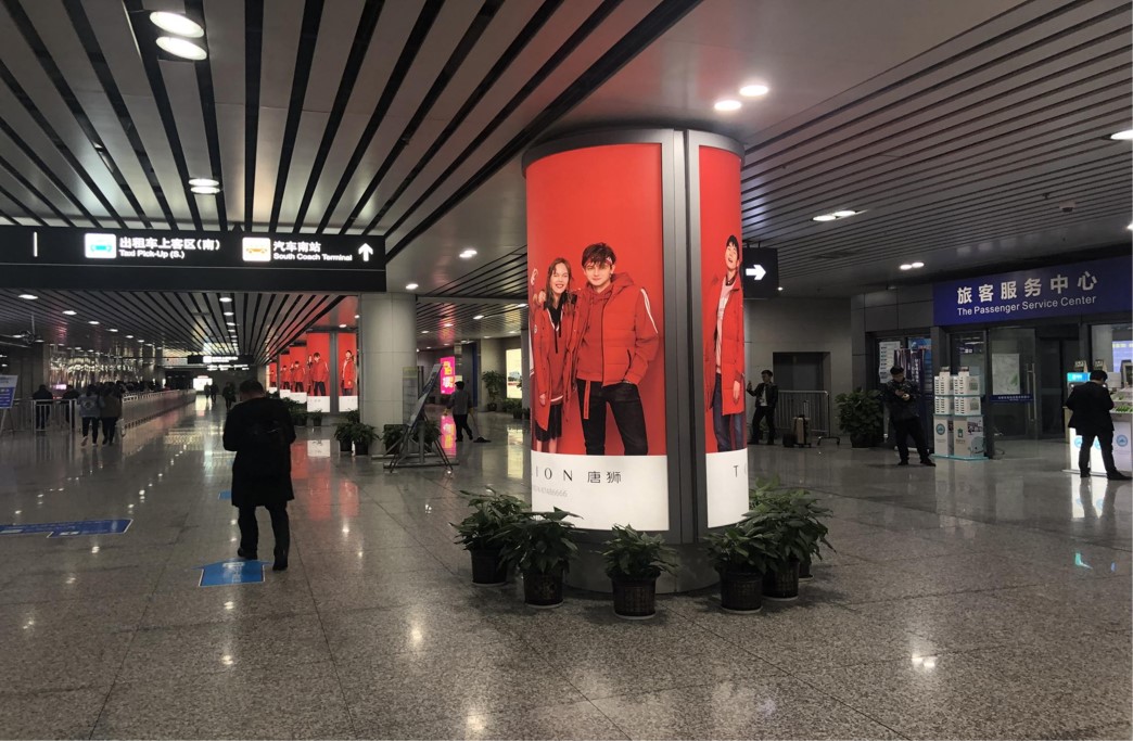 寧波高鐵站燈箱廣告-北廣場通道圓柱燈箱廣告