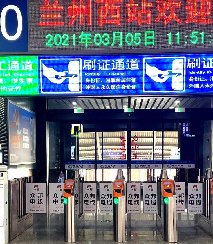 蘭州西客站候車室進站閘口感應門廣告