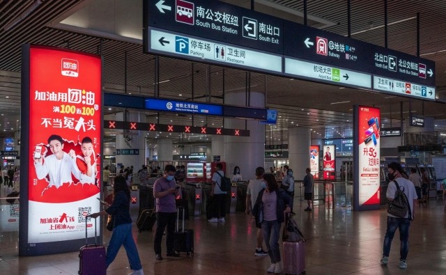 北京南站到達層到達大廳柱面燈箱廣告 · 4塊