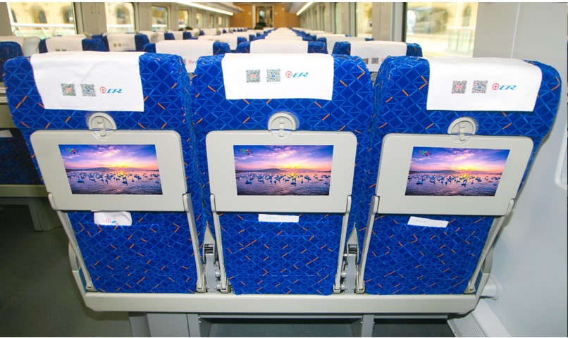 頭枕媒體規格按照現有動車組列車頭巾片規格及廣告發布面積設置,經統計其中一等座單頭巾56塊,二等座雙頭巾664塊,媒體材質為聚酯纖維,固定方式使用尼龍粘條固定于座椅外套之上。