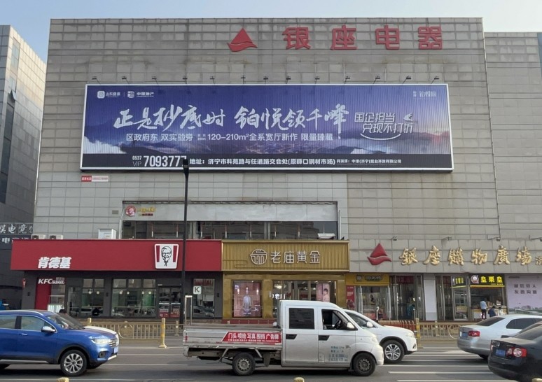 媒體位置:濟(jì)寧市太白路與共青團(tuán)路交匯處銀座購物廣場(chǎng)樓體北立面