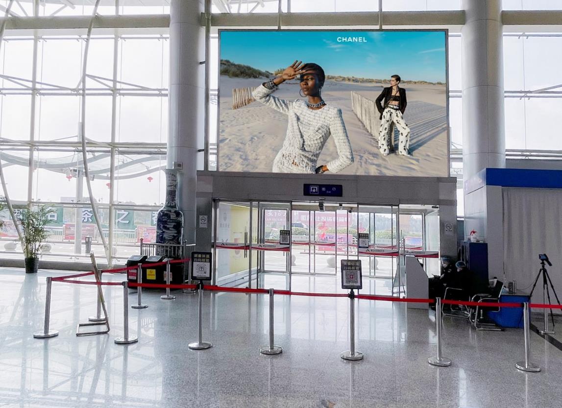 2、媒體所處位置在出發/到達迎客廳南北兩側墻面,此處是旅客國內/國際出發或到達的必視媒體,