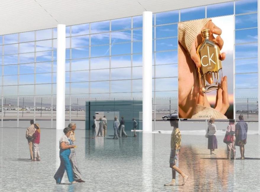 媒體位置:T2國內出發候機區 安檢后左右側通廊玻璃幕墻