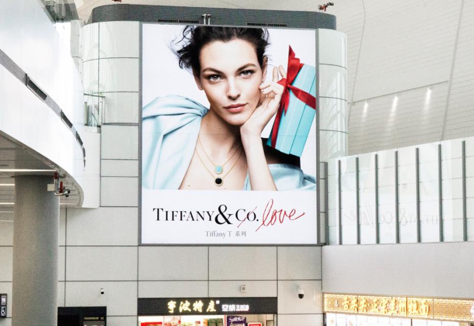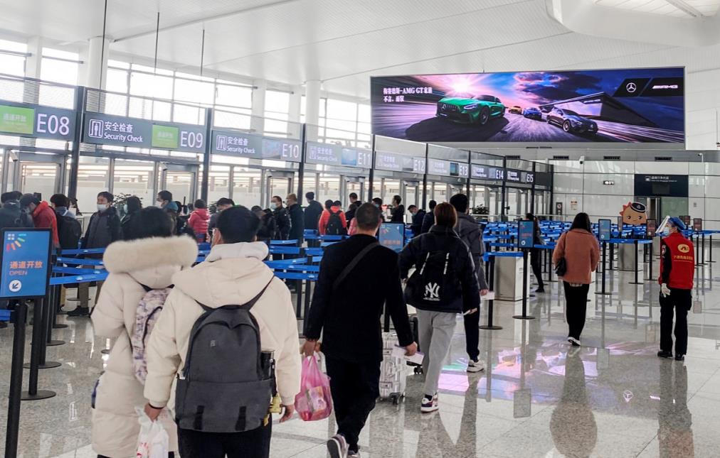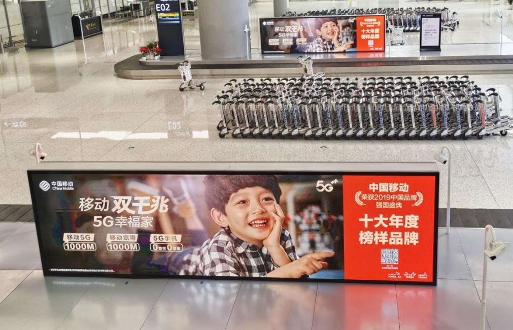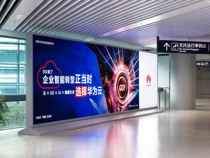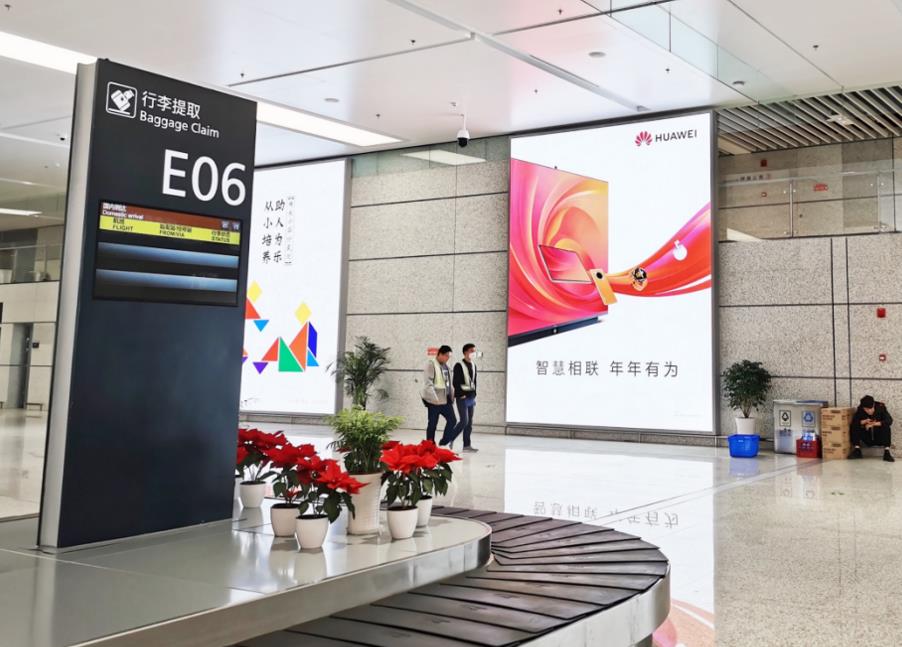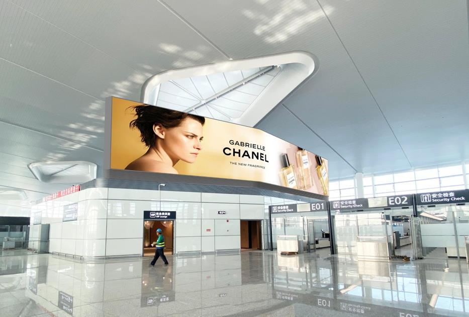 T2國內出發安檢通道右側墻體上方led大屏廣告