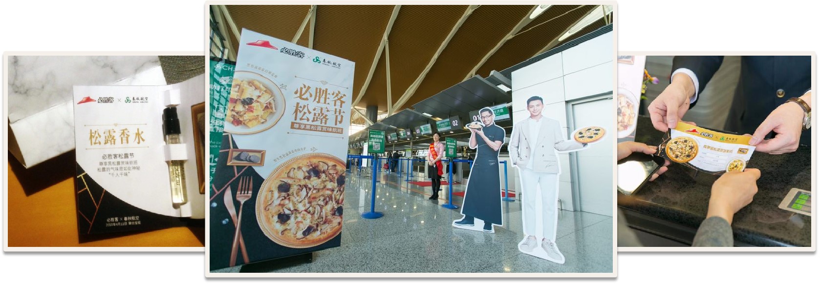 線下包括飛機噴繪、地推、機艙內宣傳及機上活動,線上包括特價艙位投放、PC/APP專題、微信、短信投放等。