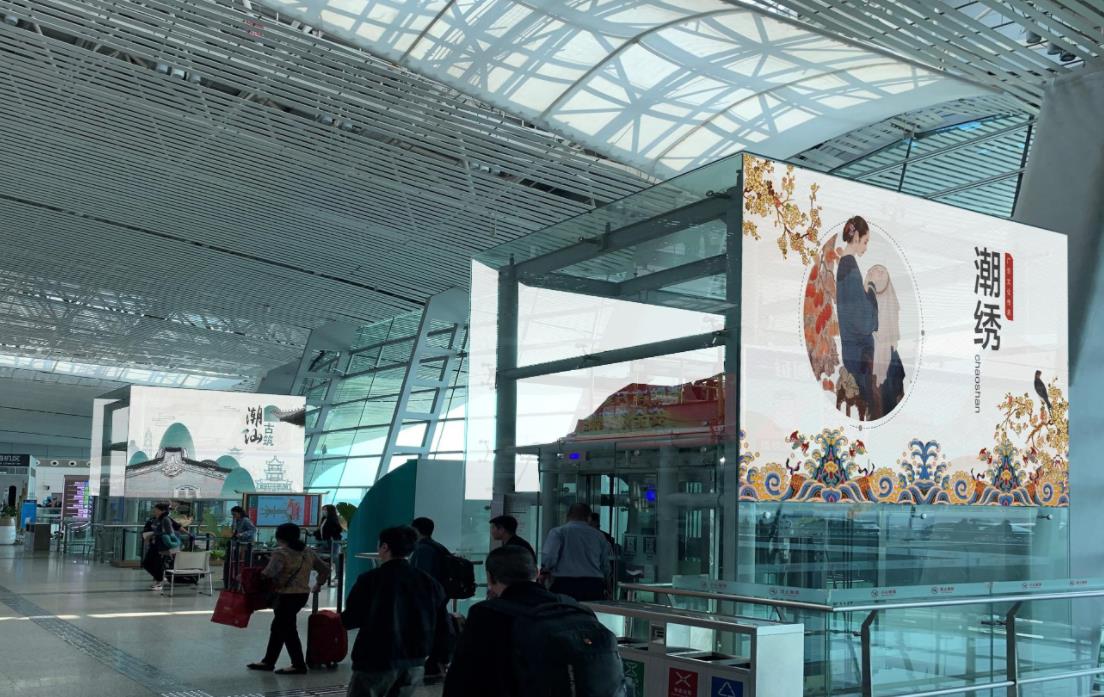 揭陽(yáng)潮汕機(jī)場(chǎng)出發(fā)值機(jī)至安檢區(qū)/到達(dá)出口區(qū)域展臺(tái)廣告