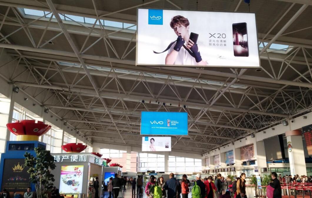 蘭州機場出發大廳安檢正上方燈箱廣告