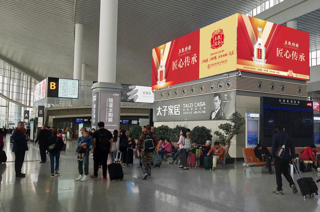 廣告位置:國內出發二層隔離區(新開發改造媒體) 廣告編號:LZA-GQ1、LZA-GQ3、LZA-GQ5 廣告規格:3m×6m×2面=36m2/塊 數量:3 廣告形式:懸掛燈箱 媒體價格:480萬元/年/3幅/組 |