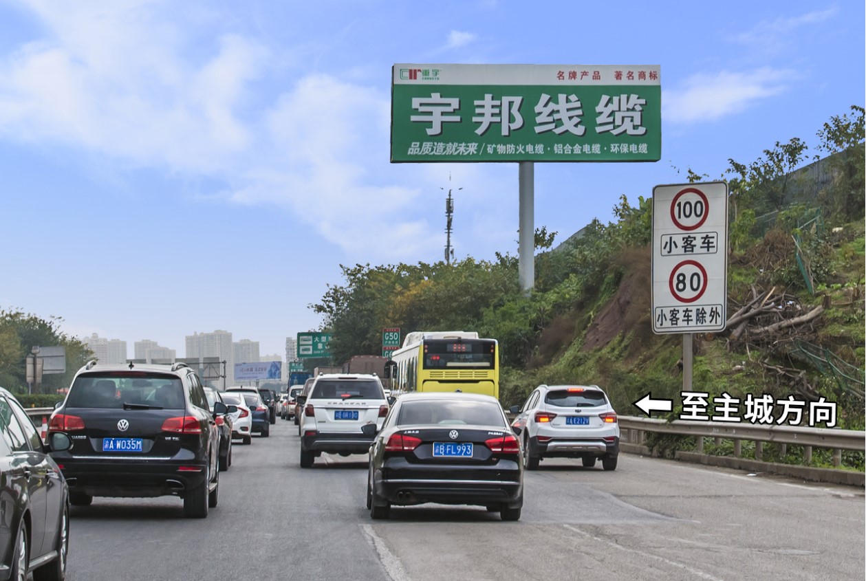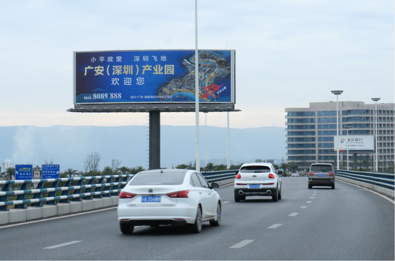 主城東環(huán)區(qū)域前往機(jī)場(chǎng)T3航站樓的必經(jīng)要道。 同時(shí)是渝宜高速公路的一段,是重慶主城通往長(zhǎng)壽,涪陵,萬州等長(zhǎng)江下游的高速干道。車流量極大,視野開闊,周邊無其他媒體干擾,廣告發(fā)布效果明顯。