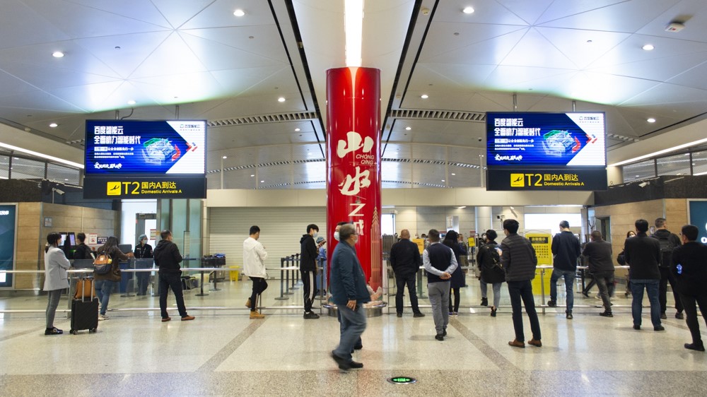 重慶江北機(jī)場(chǎng)廣告-江北機(jī)場(chǎng)國(guó)際行李廳刷屏機(jī)廣告