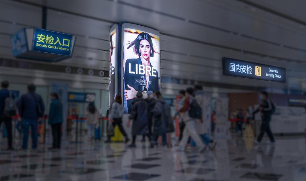 北京大興機(jī)場(chǎng)廣告-F3國(guó)內(nèi)安檢區(qū)三面豎式燈箱廣告