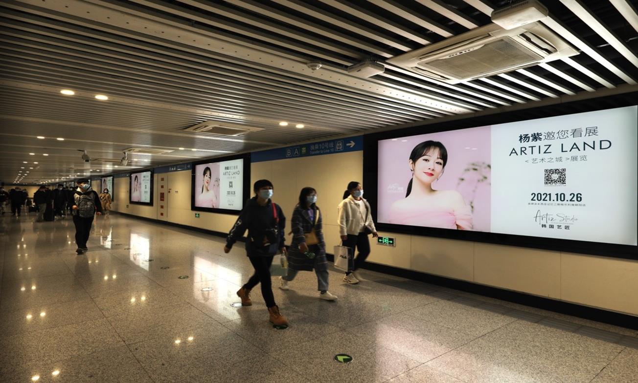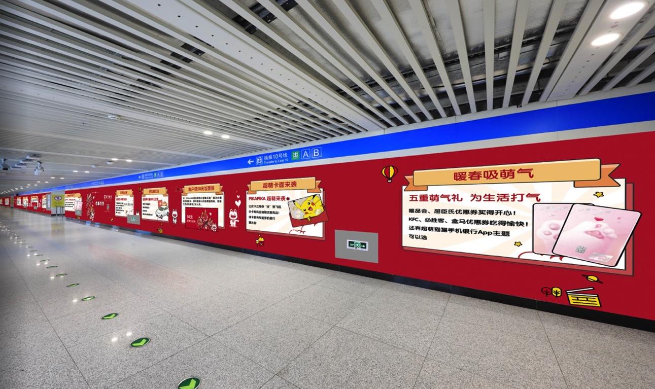 通道內(nèi)客流密集,超大幅面墻貼畫面伴隨乘客一路前行,廣告觸達(dá)時(shí)間長(zhǎng),有效保證品牌傳播