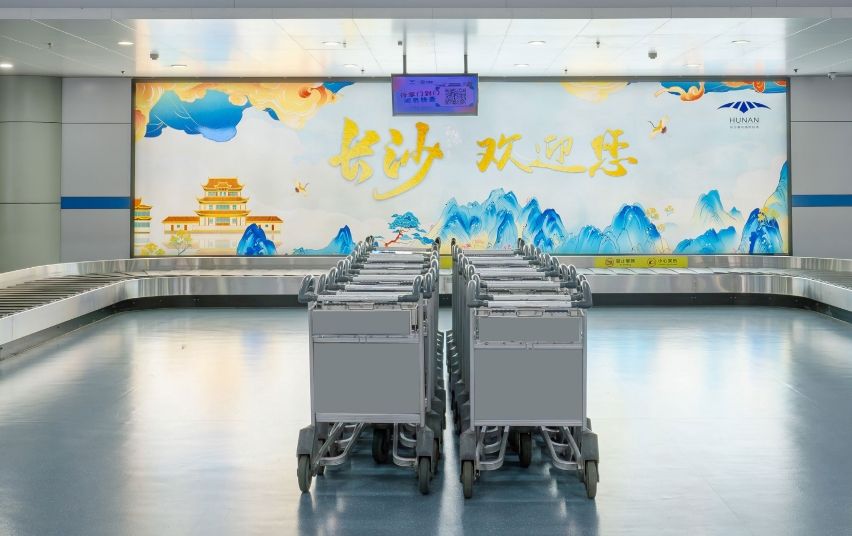 長沙黃花機場廣告 – ?安檢區內小型行李手推車廣告