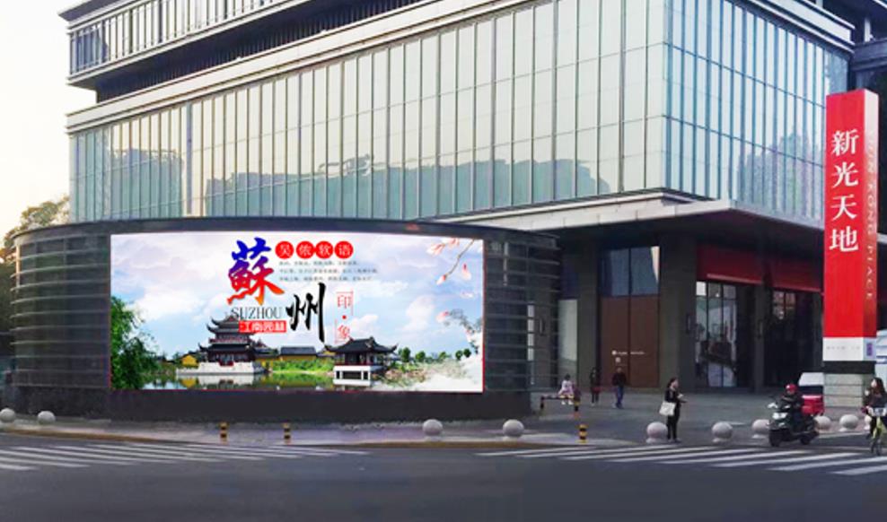 該屏位于蘇南第一商圈——蘇州觀前街核心位置,處蘇州黃金主干道南北向人民路、東西向干將路交匯,輕軌黃金干線一號線與四號線交匯,緊鄰的景德路是串聯觀前商圈與石路商圈的最便捷通道,人車流量巨大,是蘇州的網紅地標屏。
