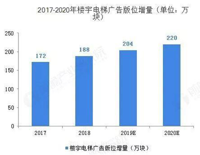 談到電梯廣告,那么就不得不談到中國(guó)的電梯行業(yè)。近年來(lái)我國(guó)房地產(chǎn)行業(yè)的高層建筑投資比例在增加,加速了電梯的需求量。中國(guó)電梯需求從2011年的37萬(wàn)臺(tái)提升至2018年的94萬(wàn)臺(tái),預(yù)計(jì)2020年我國(guó) 電梯需求量將在110萬(wàn)臺(tái)左右。電梯樓宇框架的增量空間在于國(guó)內(nèi)電梯需求量的增長(zhǎng),一般而言進(jìn)行廣告投放的電梯每部安置2塊,剔除不適合投放的電梯部數(shù),2017-2020 年樓宇電梯廣告版位的增量分別約為 172、188、204、220 萬(wàn)塊,每年同比增速在 8-9%之間。