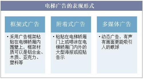 隨著廣告的形式變得越來越多樣化,電梯廣告作為一種新興的廣告媒體形式,近年來逐漸得到越來越多的廣告商青睞,電梯廣告是指在城市樓宇電梯內壁上制作、刊載的廣告,以商務電梯、樓宇電梯為主。電梯廣告的表現形式主要有三種,即框架式廣告、附著式廣告和多媒體廣告,其中框架式廣告主要采用廣告框架粘貼懸掛于電梯轎廂內部,附著式廣告是指粘貼在電梯內外的大型海報或招貼告示,多媒體廣告屬于動態廣告,與靜態廣告相比更能吸引眼球。