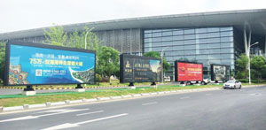南京機場3f戶外車道雙面圖騰燈箱廣告