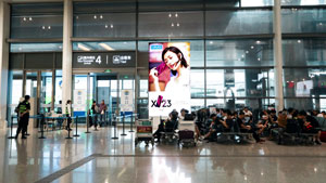 南京機(jī)場1f迎客廳出口雙面燈箱廣告