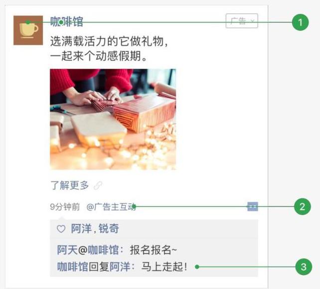1.廣告主頭像&昵稱1咖啡館廣告與圖文廣告一致