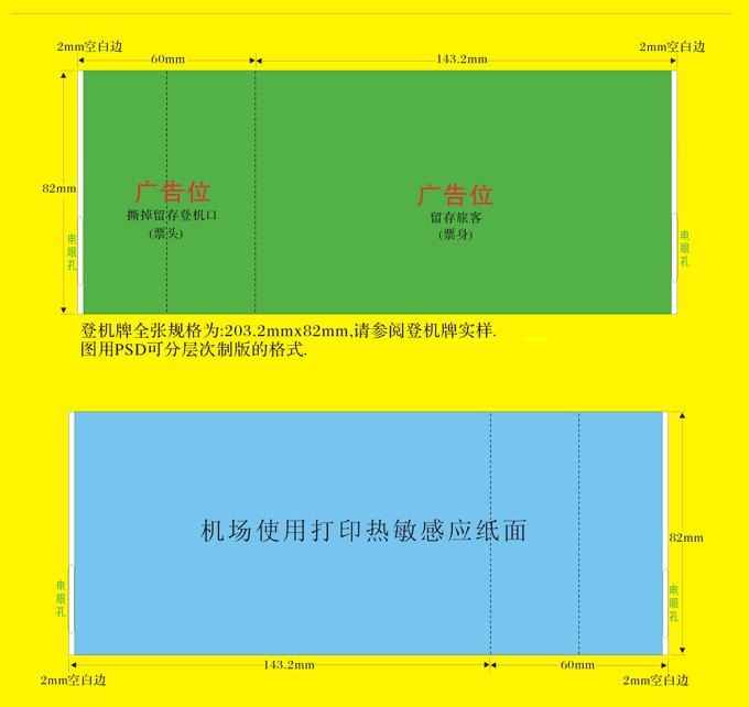 登機牌廣告尺寸:203.2mm?82mm