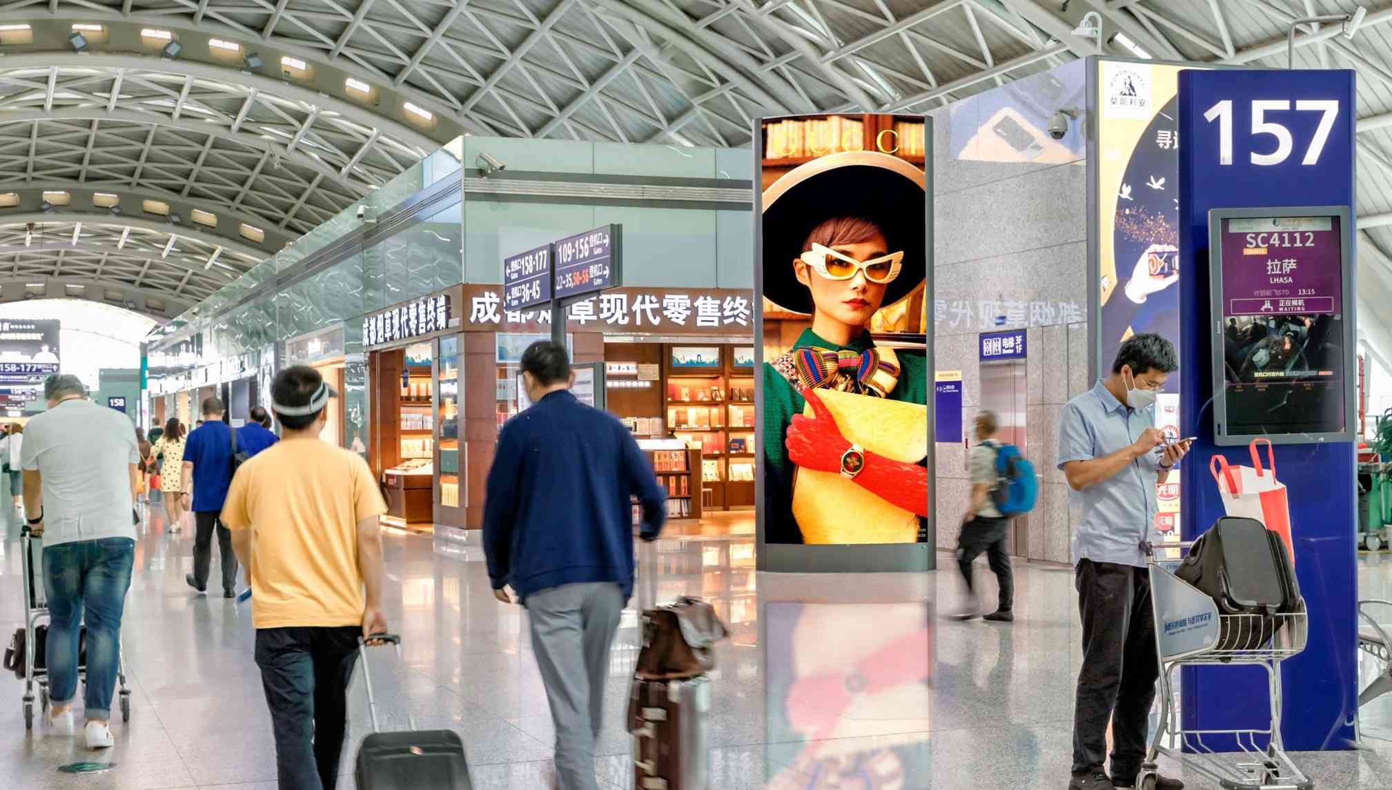 成都雙流機場廣告,雙流機場T2航站樓出發通廊廣告,萬事成傳媒