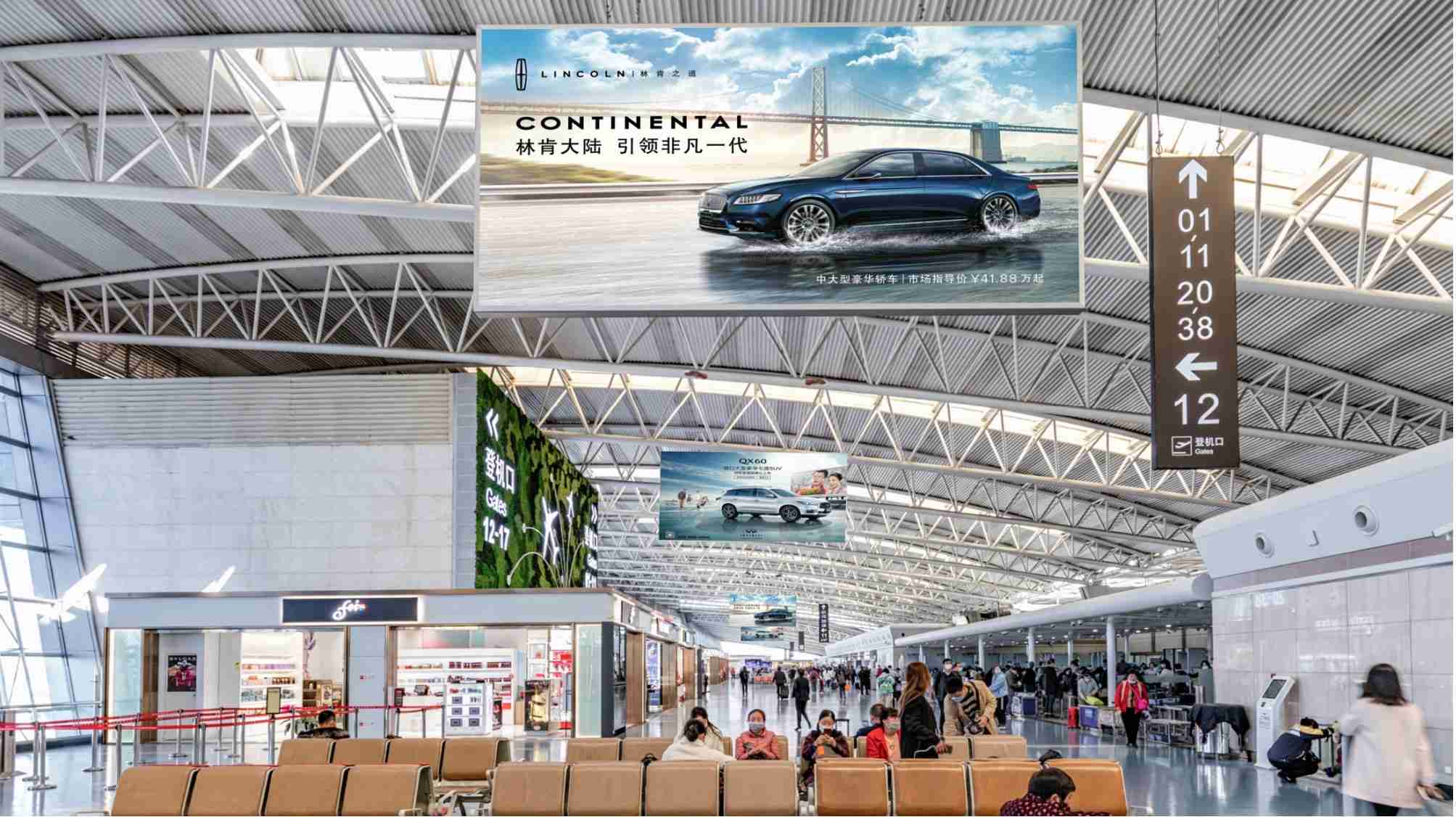 西安咸陽機場廣告,咸陽機場T2航站樓國內(nèi)出發(fā)懸掛燈箱廣告