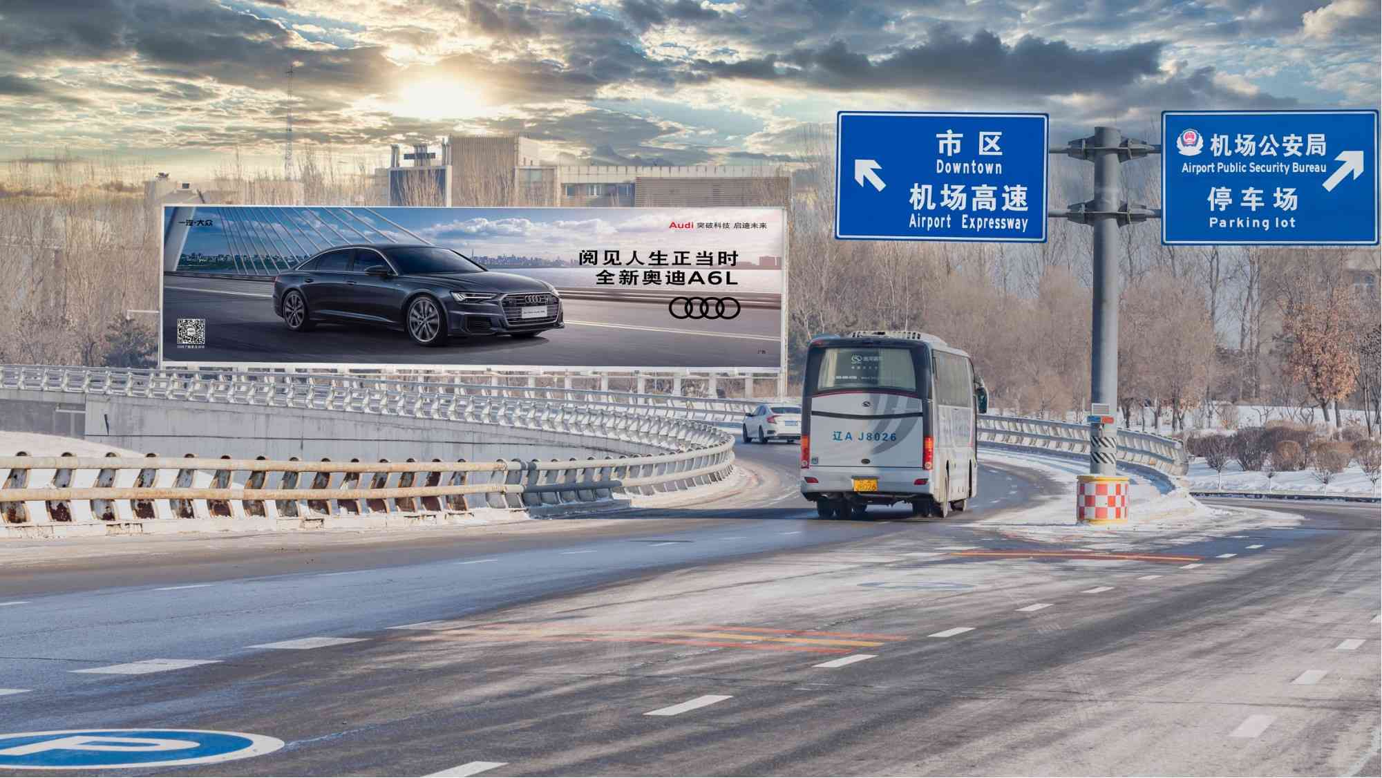 ① 該媒體橫跨沈陽桃仙國際機(jī)場(chǎng)高速路,位于機(jī)場(chǎng)高速路收費(fèi)站后。