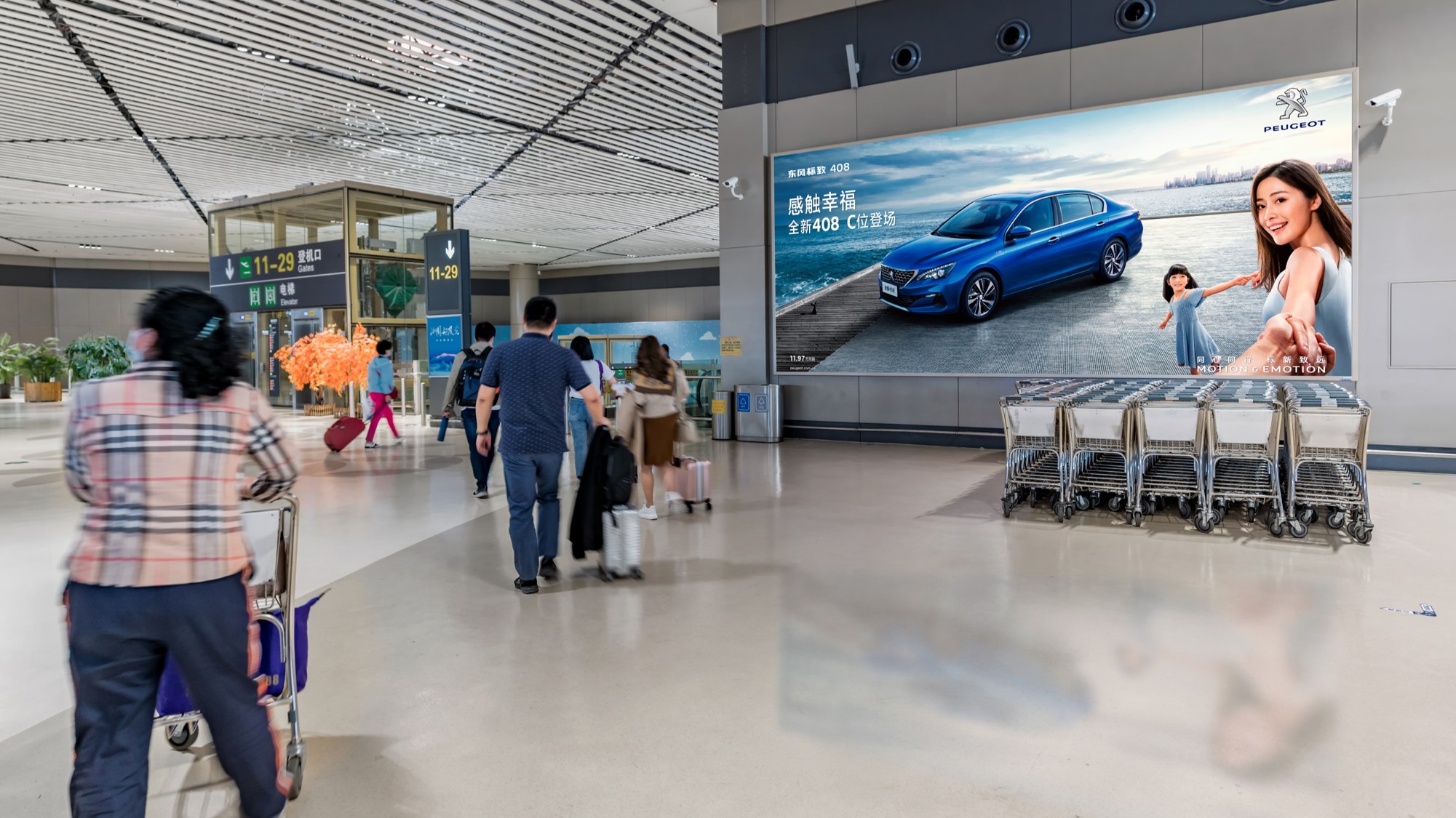 廣告位置:T2航站樓遠(yuǎn)機(jī)位下電梯正迎面及 出發(fā)通廊正迎面