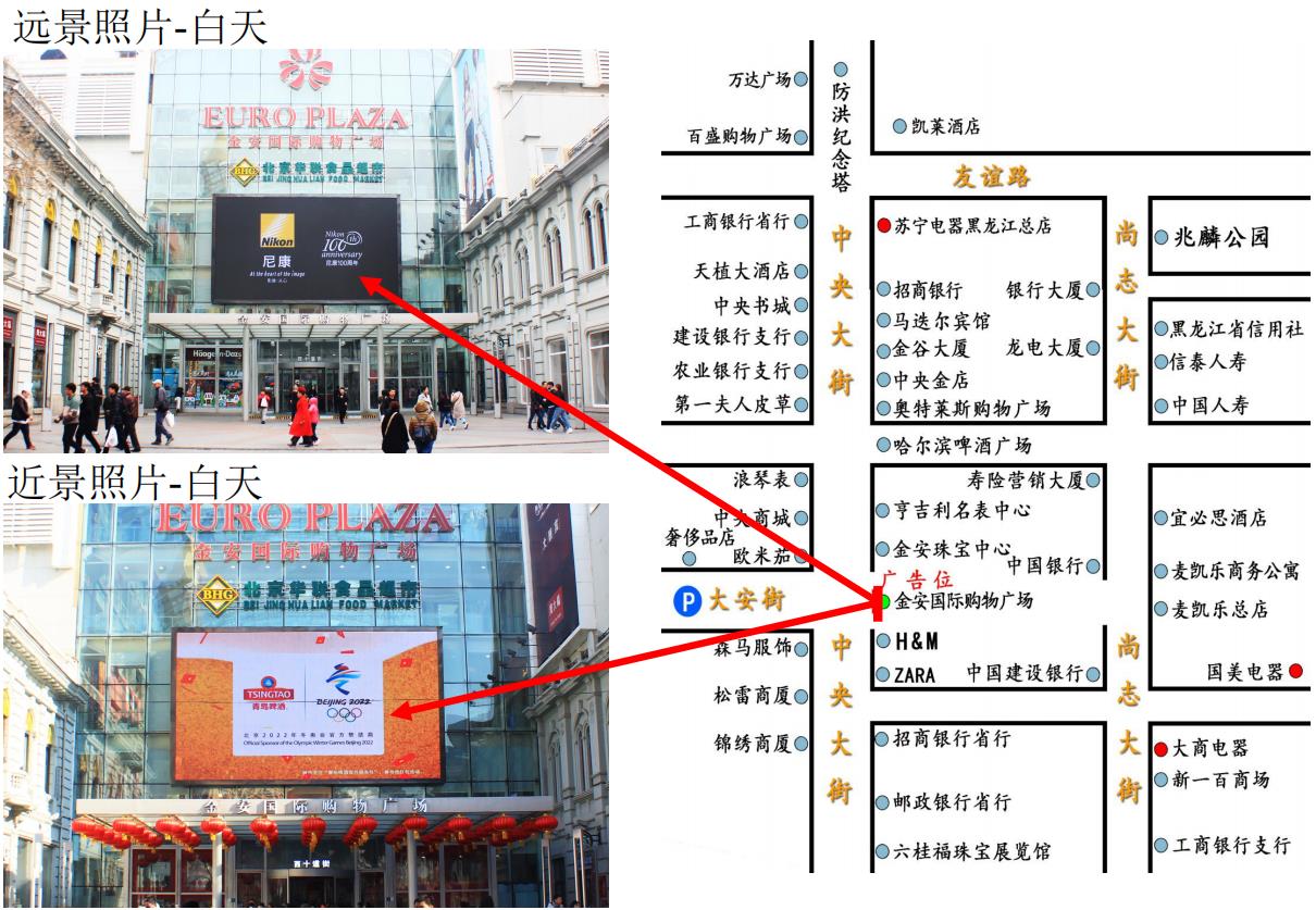 此路段LED顯示屏是中央商城、松雷商廈(道里店)與麥凱樂、新一百商場之間的重要通道,與多家金融機構相毗鄰,在消費者的購物活動過程中,可在最接近進行購物決定時施加最后的影響。