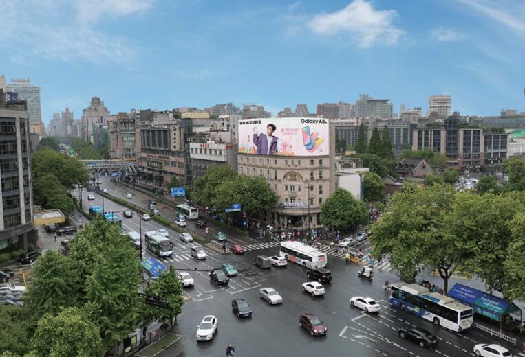 大屏位居建筑物頂層,位于美麗的西子湖畔和繁華的城市中央,是市中心最繁華的慶春路與東坡路交界處,其緊鄰著延安路商業街,附近有湖濱銀泰、蘋果杭州旗艦店,以及匯聚時尚、智慧、人文與一體的新消費街區湖濱步行街、衣之家城市百貨商場。該屏幕對面是一家四星涉外酒店杭州海華大酒店,與武林路女裝特色一條街,離美麗的西子湖畔僅500米距離。
