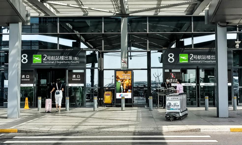 上海虹橋機場廣告-虹橋機場T2航站樓戶外出發區電子刷屏廣告