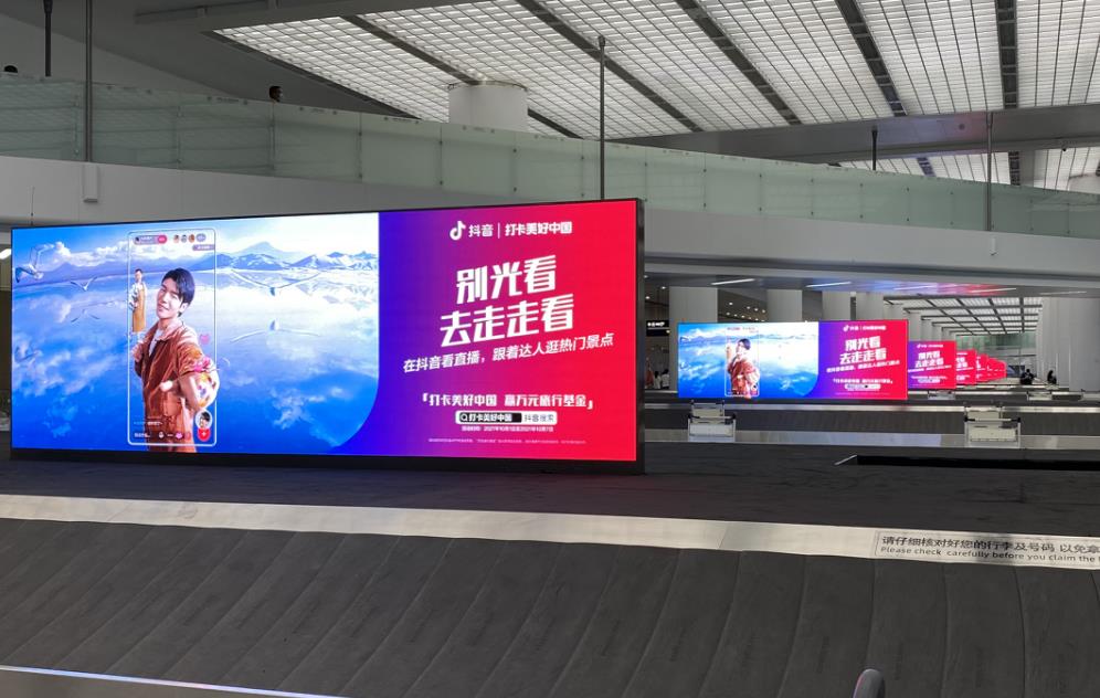 青島膠東機(jī)場國內(nèi)到達(dá)行李廳led廣告,萬事成傳媒