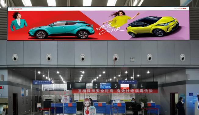 張掖甘州機(jī)場混合大廳辦票島 行李轉(zhuǎn)盤上方led廣告