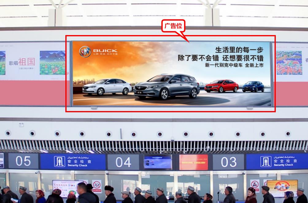 和田機(jī)場國內(nèi)出發(fā)安檢正上方led廣告