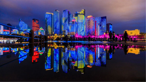 超級場景營銷舞臺 中國頂尖團(tuán)隊(duì)呈現(xiàn)上合峰會主題燈光show 以城市為舞臺,以天地為畫布,量身設(shè)計(jì),巨資打造 展現(xiàn)中國的氣度和實(shí)力,成為青島城市新名片