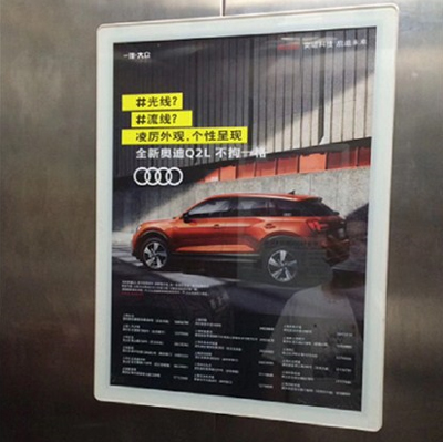 電梯平面媒體是設(shè)置于電梯轎廂、候梯間內(nèi)的平面鏡框,她具有零干擾、可平視、親和力強(qiáng)的特點(diǎn),充分利用受眾乘(候)梯的“途中時(shí)間”,填補(bǔ)電視、報(bào)刊等傳統(tǒng)媒體的空白,因有效閱讀而保證極高的廣告到達(dá)率。